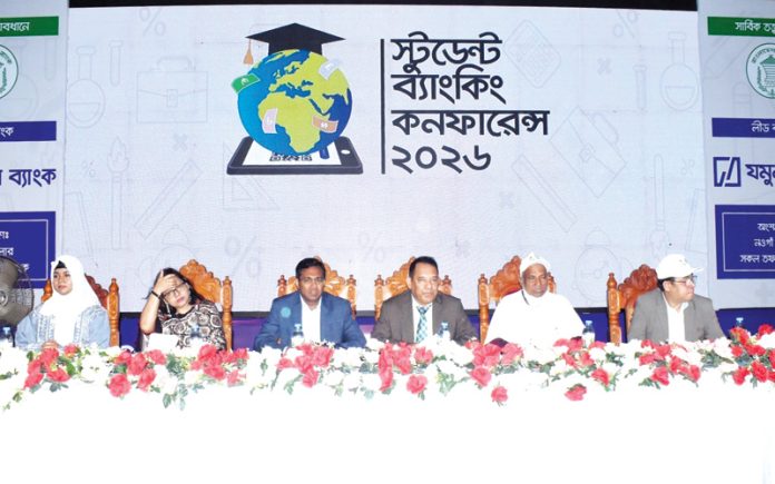 সাম্প্রতিক শিক্ষার্থীদের মাঝে সঞ্চয়ের প্রবণতা বৃদ্ধি এবং আর্থিক অন্তর্ভুক্তি নিশ্চিত করার লক্ষ্যে নওগাঁ জেলার সদর উপজেলা পরিষদ মিলনায়তনে বিপুল উৎসাহ-উদ্দীপনার মধ্য দিয়ে স্টুডেন্ট ব্যাংকিং কনফারেন্স-২০২৬ অনুষ্ঠিত হয়েছে। কনফারেন্সে জেলার সব তফসিলি ব্যাংক অংশগ্রহণ করে এবং যমুনা ব্যাংক লিড ব্যাংক হিসেবে দায়িত্ব পালন করেছে। অনুষ্ঠানে প্রধান অতিথি হিসেবে উপস্থিত ছিলেন বাংলাদেশ ব্যাংকের ফাইন্যান্সিয়াল ইনক্লুশন ডিপার্টমেন্টের পরিচালক মো. ইকবাল মহসীন। বিশেষ অতিথি হিসেবে উপস্থিত ছিলেন একই বিভাগের অতিরিক্ত পরিচালক আবেদা রহিম, উপপরিচালক তানিয়া ভূঁইয়া এবং যমুনা ব্যাংকের এক্সিকিউটিভ ভাইস প্রেসিডেন্ট ও ব্যাংকিং অপারেশন ডিভিশনের প্রধান মো. আব্দুস সোবহান। অনুষ্ঠানে সভাপতিত্ব করেন যমুনা ব্যাংকের ম্যানেজিং ডিরেক্টর অ্যান্ড সিইও মির্জা ইলিয়াস উদ্দীন আহম্মদ।